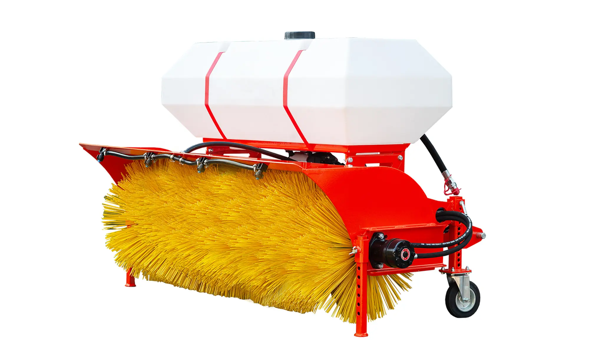 Odmiatarka nie posiada kosza na nieczystości. Idealnie nadaje się do oczyszczania utwardzonych powierzchni które łączą się z powierzchniami nieutwardzonymi w których zmiatany materiał (piasek, liście itp.) może z powrotem trafić na nieutwardzoną powierzchnię.